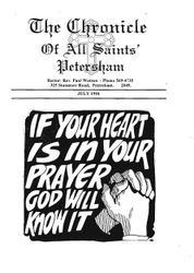 Creator: All Saints' Church (Petersham, N.S.W.) Date: 1994-07-01 Contributing Institution: Moore Theological College Description: The parish magazine of All Saints' Church, Petersham. View Full Item at Moore Theological College