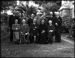 Creator: Cash, Edward Francis Nicholson (1887-1964) Date: 1947 Contributing Institution: Moore Theological College Description: L.C. Robson (1894-1964) was the first Australian-born headmaster of Sydney Church of England Grammar School (Shore). Quarter plate negative no. 49. Artist unknown. Digitised from a glass plate negative View Full Item at Moore Theological College -