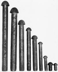 Creator: Cash, Edward Francis Nicholson (1887-1964) Contributing Institution: Moore Theological College Description: Construction rivets used in the construction of the Sydney Harbour Bridge Image digitised from glass lantern slide View Full Item at Moore Theological College -
