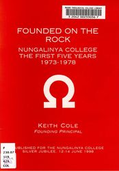 Creator: Cole, Keith (1919-) Date: 1978 Contributing Institution: Moore Theological College Description: Outlines the foundation and early years of Nungalinya College, Darwin, a combined churches training college for Indigenous Australians. 32 pages View Full Item at Moore Theological College
