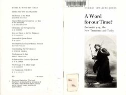 A word for our time? : Zechariah 9-14, the New Testament and today / Hubert Conliffe-Jones.