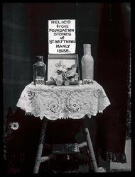 Creator: Gledhill, Percy Walter (1890-1962) Contributing Institution: Moore Theological College Description: Relics from foundation stones of St Matthew's Manly, 1928. Digitised from a glass lantern slide. View Full Item at Moore Theological College -