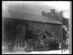 Creator: Gledhill, Percy Walter (1890-1962) Contributing Institution: Moore Theological College Description: St Peter's Church of England - exterior with congregation and Boy Scouts. Digitised from a quarter-plate glass negative. View Full Item at Moore Theological College -