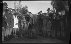 Creator: Gledhill, Percy Walter (1890-1962) Contributing Institution: Moore Theological College Description: The Bishop of the Riverina, Hector Robinson, planting a tree at Wilcannia, surrounded by school children. Black and white photograph, digitised from film negative. View Full Item at Moore Theological College -