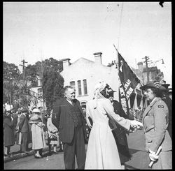 Creator: Judd, Bernard George (1918-1999) Contributing Institution: Moore Theological College Description: Governor McKell at 81st anniversary of St Peter's. Black and white photograph on glass lantern slide. View Full Item at Moore Theological College -