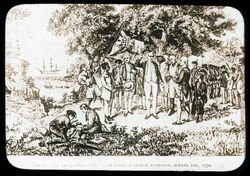 Creator: Robinson, Richard Bradley (1888-1966) Contributing Institution: Moore Theological College Description: Photograph of woodcut picture of Captain James Cook and other naval officers at Botany bay. Caption: "Captain Cook, Botany Bay, 1770". Digitised from a glass lantern slide. View Full Item at Moore Theological College