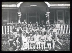 Creator: Robinson, Richard Bradley (1888-1966) Contributing Institution: Moore Theological College Description: Group of young people seated on the front steps of 'La Meuse' house, Port Hacking. 'La Meuse' was later renamed Chaldercot and remains part of the Youthworks Conference Centre site at Port Hacking. Digitised from a glass lantern slide. View Full Item at Moore Theological College