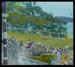 Creator: Robinson, Richard Bradley (1888-1966) Contributing Institution: Moore Theological College Description: Group of people seated on lawn. Possibly at Port Hacking. Hand-coloured slide. Digitised from a glass lantern slide. View Full Item at Moore Theological College -