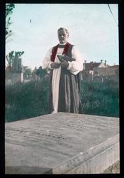 Creator: Robinson, Richard Bradley (1888-1966) Contributing Institution: Moore Theological College Description: Bishop Kirkby at Mrs Broughton's grave, Newtown. Sarah Broughton was the wife of Bishop William Grant Broughton, and is buried in Camperdown Cemetery, adjacent to St Stephen's Church, Newtown. Hand-coloured. Digitised from a glass lantern slide. View Full Item at Moore Theological College -