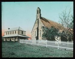 Creator: Robinson, Richard Bradley (1888-1966) Contributing Institution: Moore Theological College Description: Wilberforce, N.S.W. - exterior of church and adjacent house. Hand-coloured. Digitised from a glass lantern slide. View Full Item at Moore Theological College -