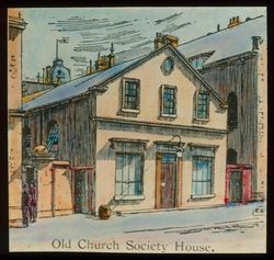 Creator: Robinson, Richard Bradley (1888-1966) Contributing Institution: Moore Theological College Description: Woodcut illustration of building exterior. Caption: "Old Church Society House. In Philip St, used from 1856 to 1868". Hand-coloured. Digitised from a glass lantern slide. View Full Item at Moore Theological College -