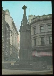 Creator: Robinson, Richard Bradley (1888-1966) Contributing Institution: Moore Theological College Description: Monument at the intersection of Hunter, Bligh and Castlereagh Streets, Sydney. Caption: "Monument where 1st church stood". Hand-coloured. Digitised from a glass lantern slide. View Full Item at Moore Theological College