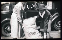 Creator: Robinson, Richard Bradley (1888-1966) Contributing Institution: Moore Theological College Description: Two women with large sack, in front of car with woman in driver's seat. Caption: "L.H.M.U. parcels". L.H.M.U. possibly Ladies' Home Mission Union. Digitised from a glass lantern slide. View Full Item at Moore Theological College -