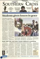 Creator: Butler, Amy, Robson, Geoff, and Rodgers, Margaret Amelia (1939-2014) Date: 2003-02-01 Contributing Institution: Moore Theological College Description: Both NSW libs and Labor remain addicted to gambling by Amy Butler New evangelist keen to see lives changed by Geoff Robson - on Rick Lewers move from Crossroads in Canberra to Evangelism Ministries in Sydney. Picking up the pieces in Bali by Geoff Robson - on the Bali bombings. More interest in t... View Full Item at Moore Theological College -