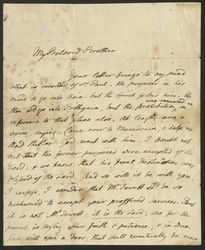 Creator: Simeon, Charles (1759-1836) Date: 1833 Contributing Institution: Moore Theological College Description: Page 1 of a letter to a wealthy patron, John Gisborne, on livings. View Full Item at Moore Theological College