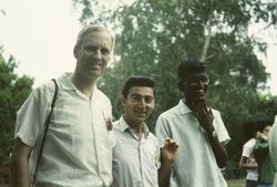 Creator: Steward, Gwenda, Overseas Christian Fellowship, and Steward, Harrold Date: 1960 Contributing Institution: Moore Theological College Description: Mebourne OCF, Frank Hutabarat (likely middle man on grass) View Full Item at Moore Theological College -