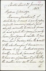 Creator: Broughton, William Grant (1788-1853) Date: 1853-01-25 Contributing Institution: Moore Theological College Description: Expresses vexation over decision of provost and fellows regarding their decision on the Newman's Case. Informs Coleridge of his engagements. View Full Item at Moore Theological College