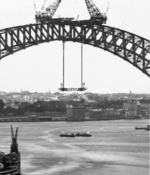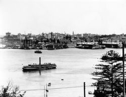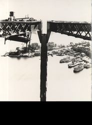 Creator: Cash, Edward Francis Nicholson (1887-1964) Date: 1930 Contributing Institution: Moore Theological College Description: Beginning of bridge construction, with ferry on harbour Image digitised from glass lantern slide View Full Item at Moore Theological College -