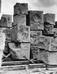 Creator: Cash, Edward Francis Nicholson (1887-1964) Date: 1930 Contributing Institution: Moore Theological College Description: Blocks of sandstone used for the construction of the pylons. Image digitised from glass lantern slide View Full Item at Moore Theological College -