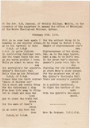 Creator: Grahame, D. Date: 1935 Contributing Institution: Moore Theological College Description: Humourous poem written to commemorate T.C. Hammond's departure for Australia. View Full Item at Moore Theological College -
