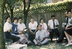 Creator: Steward, Gwenda, Overseas Christian Fellowship, and Steward, Harrold Date: 1960 Contributing Institution: Moore Theological College Description: Mebourne OCF, Frank Hutabarat (likely middle man on grass) View Full Item at Moore Theological College -
