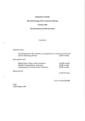 Creator: Kaye, Bruce Norman (1939-) Date: 1996 Contributing Institution: Moore Theological College Description: Introduction: The background to the conference, its significance in Australia and beyond, and its continuing relevance. Documentation: Bishop Perry’s Diary of the Conference; Related Correspondence at the time; Contemporary Accounts of the Conference. View Full Item at Moore Theological College -