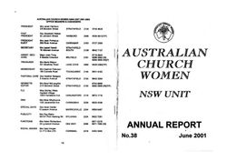 Creator: Australian Church Women Date: 2001 Contributing Institution: Moore Theological College View Full Item at Moore Theological College