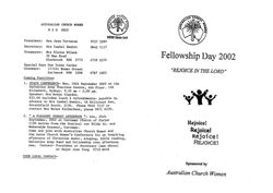 Creator: Australian Church Women - NSW unit Date: 2002 Contributing Institution: Moore Theological College View Full Item at Moore Theological College