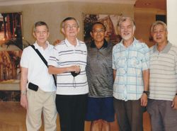 Creator: Overseas Christian Fellowship and Peng, Loh Hoe Date: 2011-10-30 Contributing Institution: Moore Theological College Description: From left: Tan Loy Jin (lawyer), Loh Hoe Peng (Architect), Lim Yek (Business), Michael Ong (Sculptor), unknown datuk? (30 Oct 2011, Equatorial Hotel, Malacca. Returned CMS Hostel friends) View Full Item at Moore Theological College