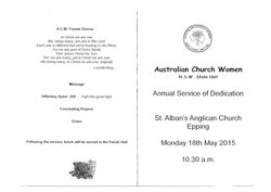 Creator: Australian Church Women Date: 2015 Contributing Institution: Moore Theological College View Full Item at Moore Theological College