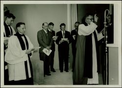 Creator: Australian Church Record Date: 1960-05-08 Contributing Institution: Moore Theological College Description: The hall is being opened by the Right Rev J.C. Vockler, Assistant Bishop of Adelaide, with Lance Shilton and Colin Tunbridge. View Full Item at Moore Theological College -