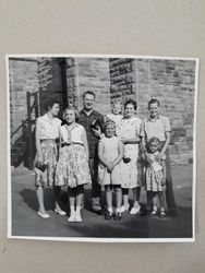 Creator: Steward, Gwenda, Overseas Christian Fellowship, and Steward, Harrold Date: 1959-1960 Contributing Institution: Moore Theological College Description: Photo from Judith Bond of her family at OCF Conference 1959-1960. She labels it as "Steward Family at the 1st Convention 1959-1960" and the names are Ruth, Judith, Dr Harrold, Miriam, Priscilla, Mrs Gwenda, Elisabeth, John View Full Item at Moore Theological College