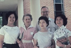 Creator: Steward, Gwenda, Overseas Christian Fellowship, and Steward, Harrold Contributing Institution: Moore Theological College Description: (far left Lillion Ha), (far right Stella), (second from left. Mrs Irena Young. Wife of Dr Jeffrey Young, opened their home for OCF gathering in Cheltenham), (second from right, Shirley Ng nee Lu), (man behind, Ezekiel from Hong Kong) View Full Item at Moore Theological College -