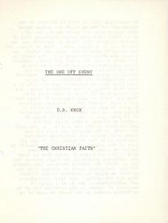 Creator: Knox, D. B. (David Broughton) (1916-1994) Date: 1978-10-08 Contributing Institution: Moore Theological College Description: The Christian Faith series View Full Item at Moore Theological College -