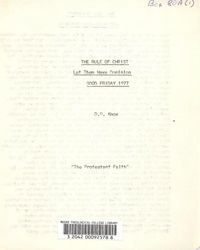Creator: Knox, D. B. (David Broughton) (1916-1994) Date: 1970 Contributing Institution: Moore Theological College Description: Pamphlet, not broadcast on radio View Full Item at Moore Theological College -