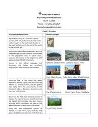 Date: 2019-03-01 Contributing Institution: Moore Theological College Description: Document gives background and introductry information about Slovenia, designed for use in churches and to compliment the slide show Come €“ Everything is Ready! - World day of prayer 2019 Prepared by WDP Slovenia CD label reads : "World Day of Prayer 2019 Slovenia Come everything is ready" View Full Item at Moore Theological College