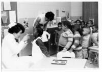 Date: 1974/1978 Contributing Institution: Atlanta University Center Robert W. Woodruff Library Description: Children line up to get examined by a nurse. View Full Item at Atlanta University Center Robert W. Woodruff Library -