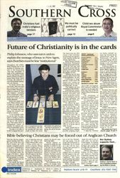 Creator: Robson, Geoff Date: 2002-07-01 Contributing Institution: Moore Theological College Description: Future of Christianity is in the cards - on reaching people into New Age philosophy, and the decline of Christianity in general Bible believing Christians may be forced out of Anglican Church - on the Anglican church in Canada and homosexuality and the Bible Vote for gay unions could split Anglic... View Full Item at Moore Theological College -
