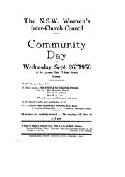 Creator: Australian Church Women - NSW unit Date: 1956-10-26 Contributing Institution: Moore Theological College View Full Item at Moore Theological College