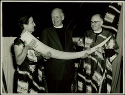 Creator: Australian Church Record Date: 1958 Contributing Institution: Moore Theological College Description: The tusk was unveiled by the CMS President's wife Lady Grubb, at CMS House in London. View Full Item at Moore Theological College -