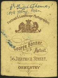 Creator: Jones, Nathaniel (1861-1911) and Bonner, George Contributing Institution: Moore Theological College Description: Albumen print on card. 'George Bonner, Portrait & Landscape photographer, 36 Beatrice Street, Oswestry' printed on reverse. View Full Item at Moore Theological College -