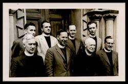 Creator: Cash, Edward Francis Nicholson (1887-1964) Date: 1959 Contributing Institution: Moore Theological College Description: Broughton Knox, Marcus Loane and T.C. Hammond are in the front row Black and white positive print View Full Item at Moore Theological College -