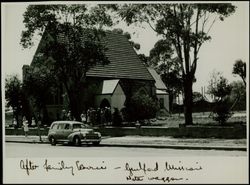Creator: Emery, O.F. Date: 1955 Contributing Institution: Moore Theological College Description: Shows the congregation outside the church after a service held during a mission. View Full Item at Moore Theological College