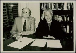 Rev James Payne and Bishop K.H. Ting at the signing of the memorandum of understanding between the UBS and the China Christian Council in Hong Kong