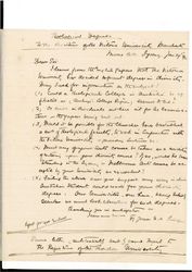 Creator: Hughes, A. and Jones, Nathaniel (1861-1911) Date: 1901-03-11 Contributing Institution: Moore Theological College Description: Response to inquiries by Jones regarding the Victoria University's proposed scheme for degrees in Divinity. 3 published items attached: Pamphlet from the University of London noting statutes and regulations for the reconstitution of the University, for studies and examinations; Regulations relati... View Full Item at Moore Theological College