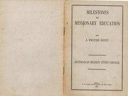 Dovey, J. Whitsed. Milestones In Missionary Education/ by J. Whitsed Dovey. Sydney : Australian Mission Study Council.. 1916. Retrieved from the Atla Digital Library, https://archives.moore.edu.au/documents/detail/127222.