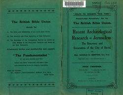 Morton, Harold Christopherson. Recent Archaeological Research At Jerusalem : the Discovery and Excavation of the City of David / Harold C. Morton. Taunton : Hammett. Retrieved from the Atla Digital Library, https://archives.moore.edu.au/documents/detail/27169.
