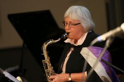 Rev Marge Mills playing the saxaphone CD label reads : "Mary Andrews College Graduation on 20 March 2015 CD contents - lower resilution copies of all photos selected high resolution photos"
