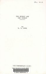 Knox, D. (1969). The Spirit and the church. Retrieved from the Atla Digital Library, https://archives.moore.edu.au/documents/detail/8430.