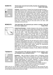 The July prayer update from Bible Society. Each day has prayer points for a different country, including : United Arab Emirates Singapore New Zealand Zimbabe Russia Cd reads : "July PNU"